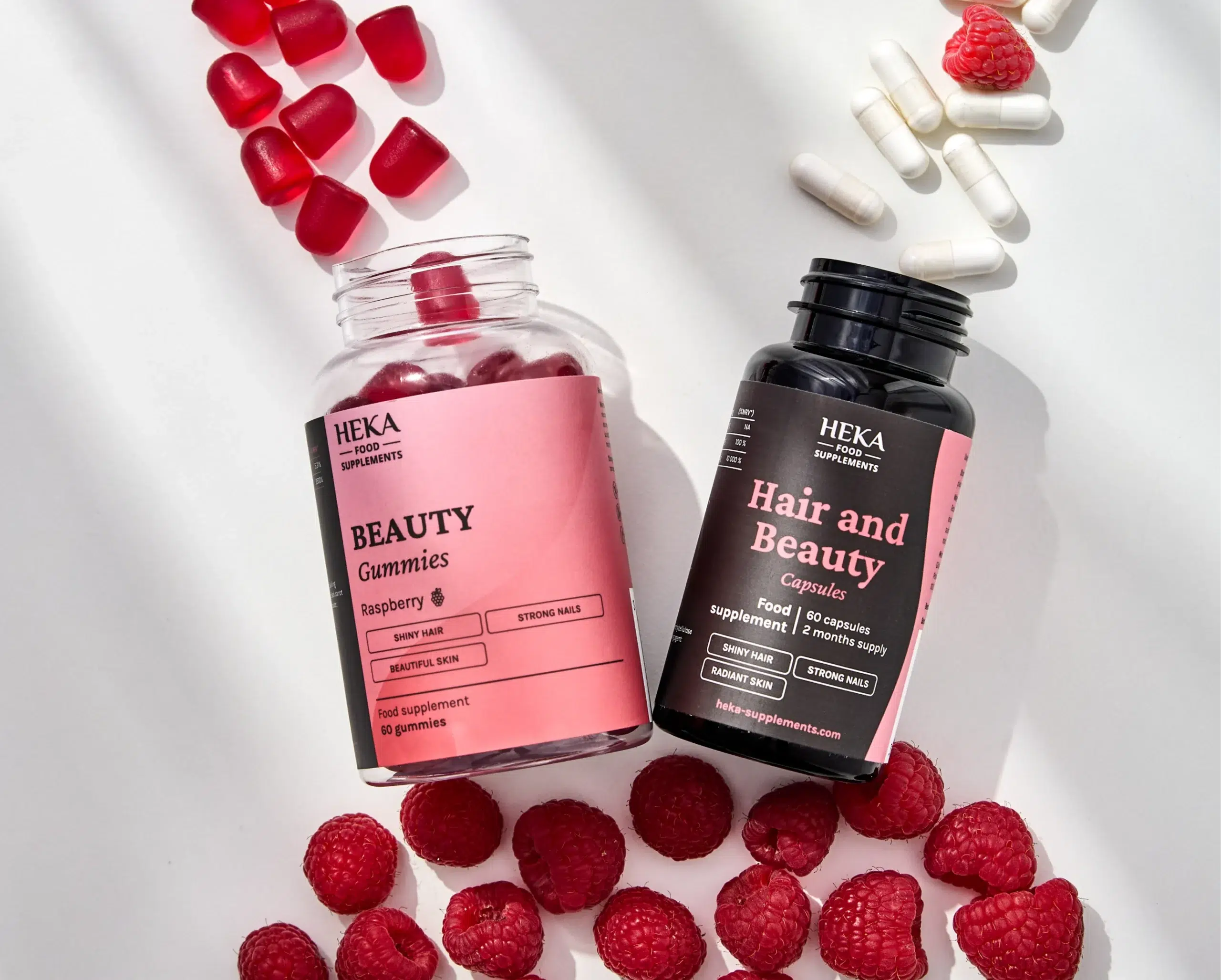 HEKA Дъвчащи таблетки за коса, кожа и нокти комбинират ключови съставки, биотин и витамин C, във вкусни бонбони, които помагат за поддържане на здравето и красотата на косата, кожата и ноктите. Те са предназначени за всеки, който иска сияйна кожа, здрава коса и нокти, но не обича да приема капсули и таблетки. HEKA Beauty дъвчащи таблетки предлагат проста и вкусна алтернатива, без прием на капсули или таблетки. Те имат приятен вкус и са лесни за дозиране.