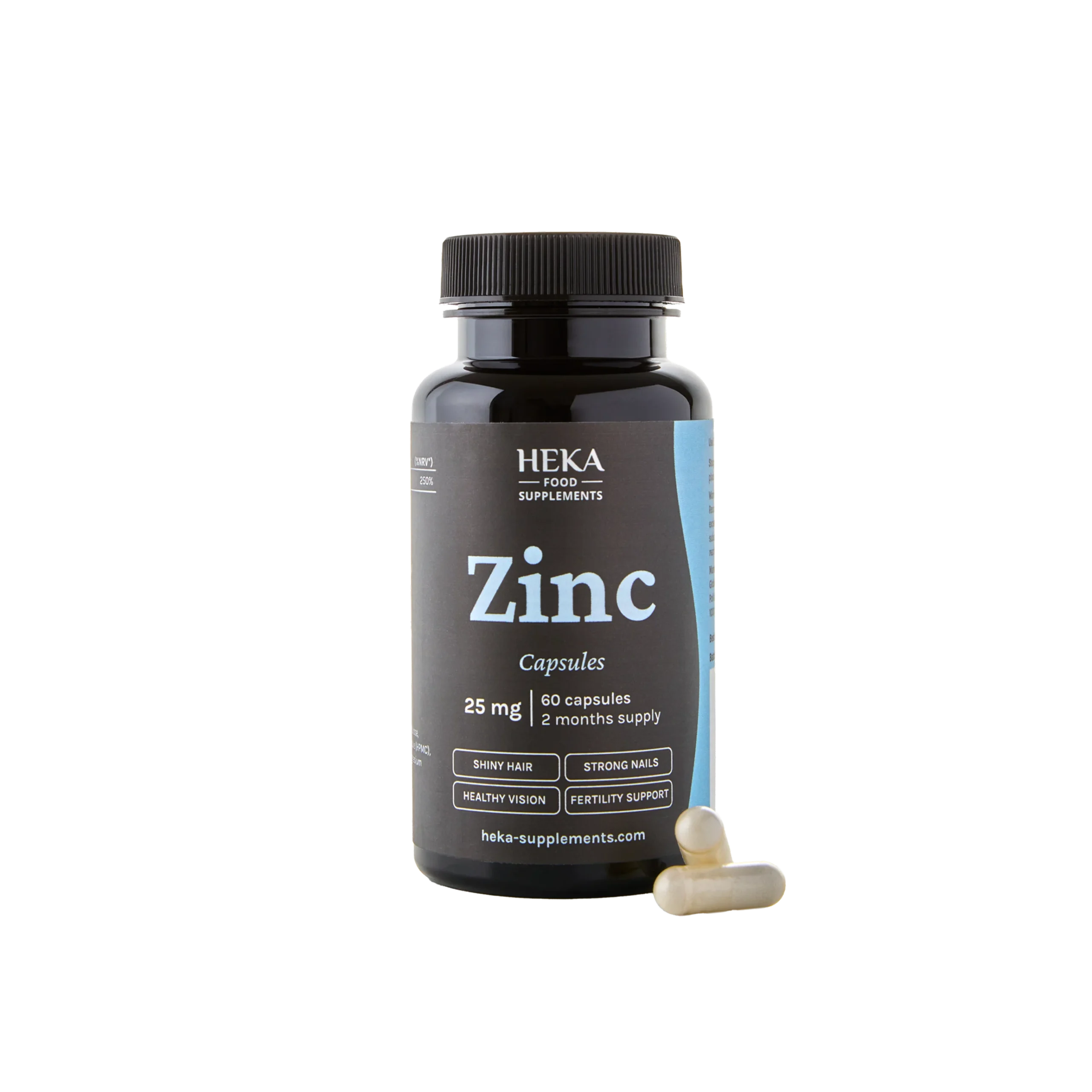 HEKA zinkové kapsle jsou doplněk stravy s vysokým obsahem zinku: jedna kapsle obsahuje 25 mg zinku, což představuje 250 % referenční hodnoty příjmu. Ideální pro všechny, kteří chtějí účinně doplnit příjem zinku a podpořit imunitní systém, pokožku, vlasy, nehty a celkové zdraví.