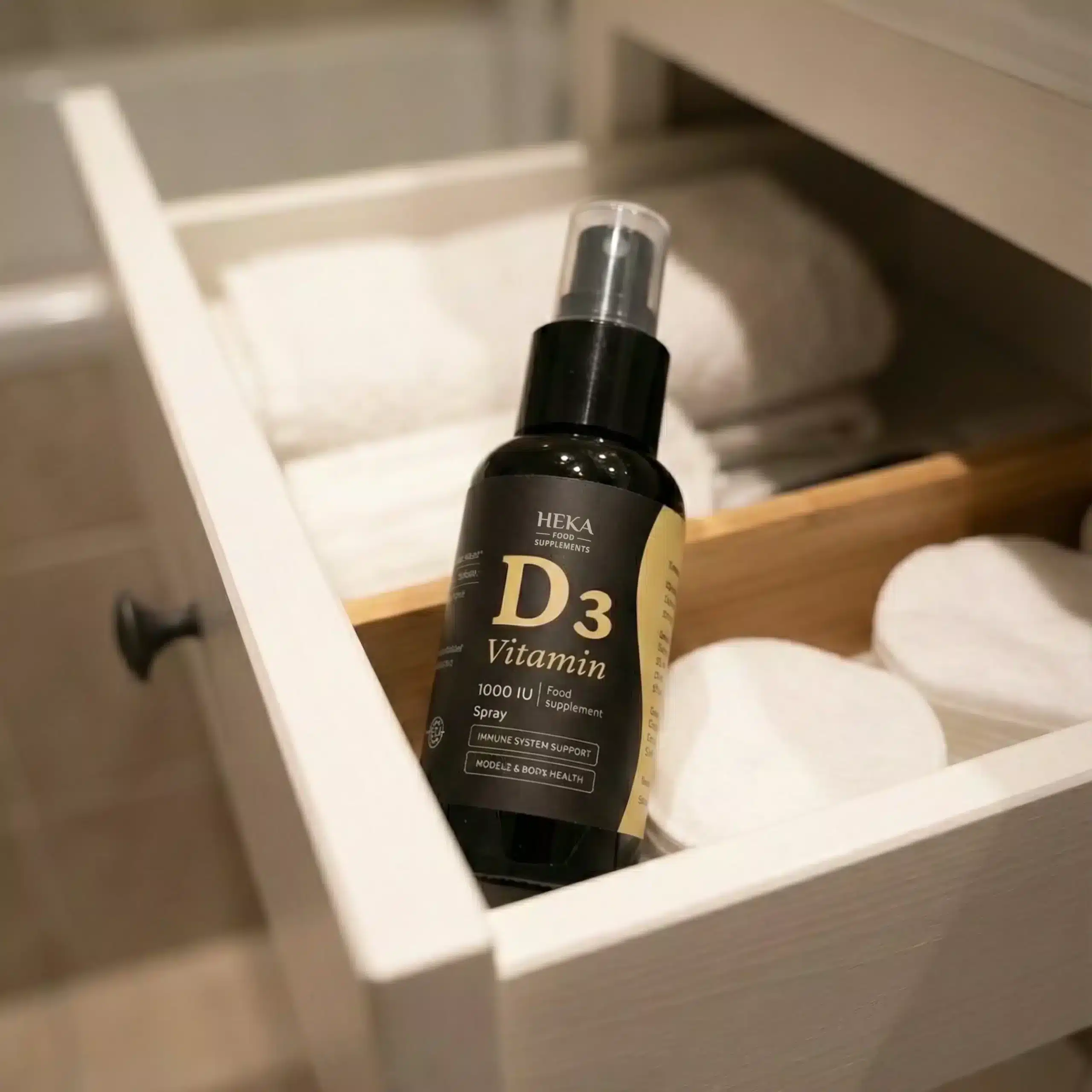 La vitamina D3 svolge un ruolo chiave nell’assorbimento di calcio e fosforo, importanti per la resistenza delle ossa e la salute dei denti. Lo spray orale viene applicato direttamente in bocca, il che è particolarmente conveniente per chi desidera un’integrazione rapida e confortevole, a casa o in viaggio. La D3 nello spray contribuisce anche alla normale funzione del sistema immunitario e supporta la funzione muscolare e il benessere in tutte le stagioni.