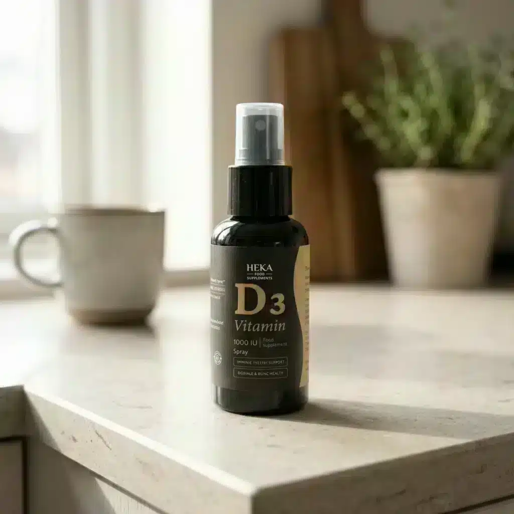 HEKA D3 è un integratore alimentare di vitamina D3 (colecalciferolo) in una comoda forma spray, arricchito con un rinfrescante aroma di menta. Ogni dose giornaliera fornisce 1000 UI di vitamina D3 (500% VNR), consentendo un’integrazione facile e precisa di questa vitamina essenziale per il sistema immunitario, le ossa e i muscoli.