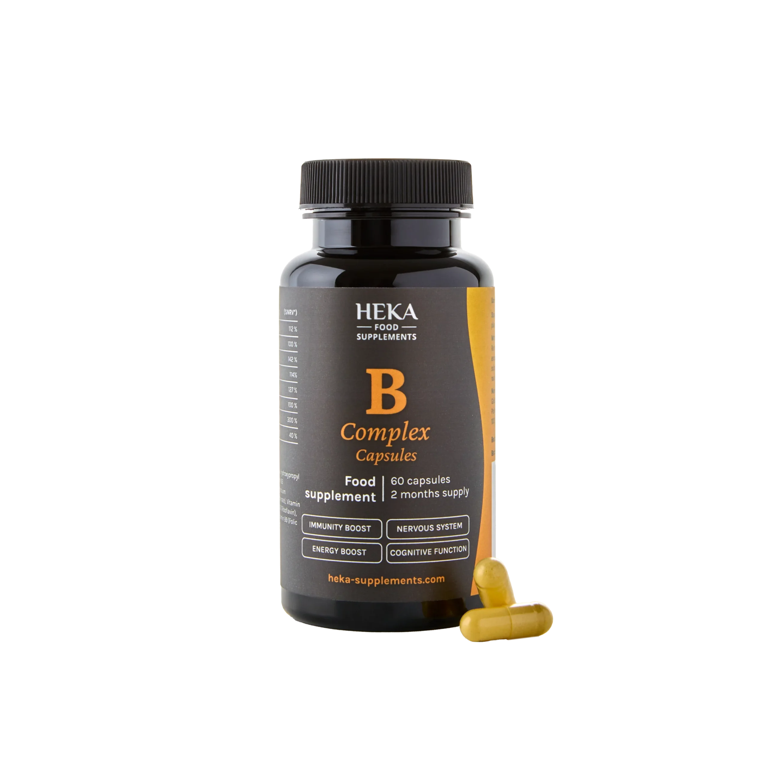 This food supplement contains a combination of B-complex vitamins (B1, B2, B3, B5, B6, B9/folic acid, B7/biotin, B12) in a convenient capsule to support normal carbohydrate and energy metabolism, and the nervous system. One capsule daily provides a broad spectrum of B vitamins in doses that meet or exceed the recommended daily allowances.
