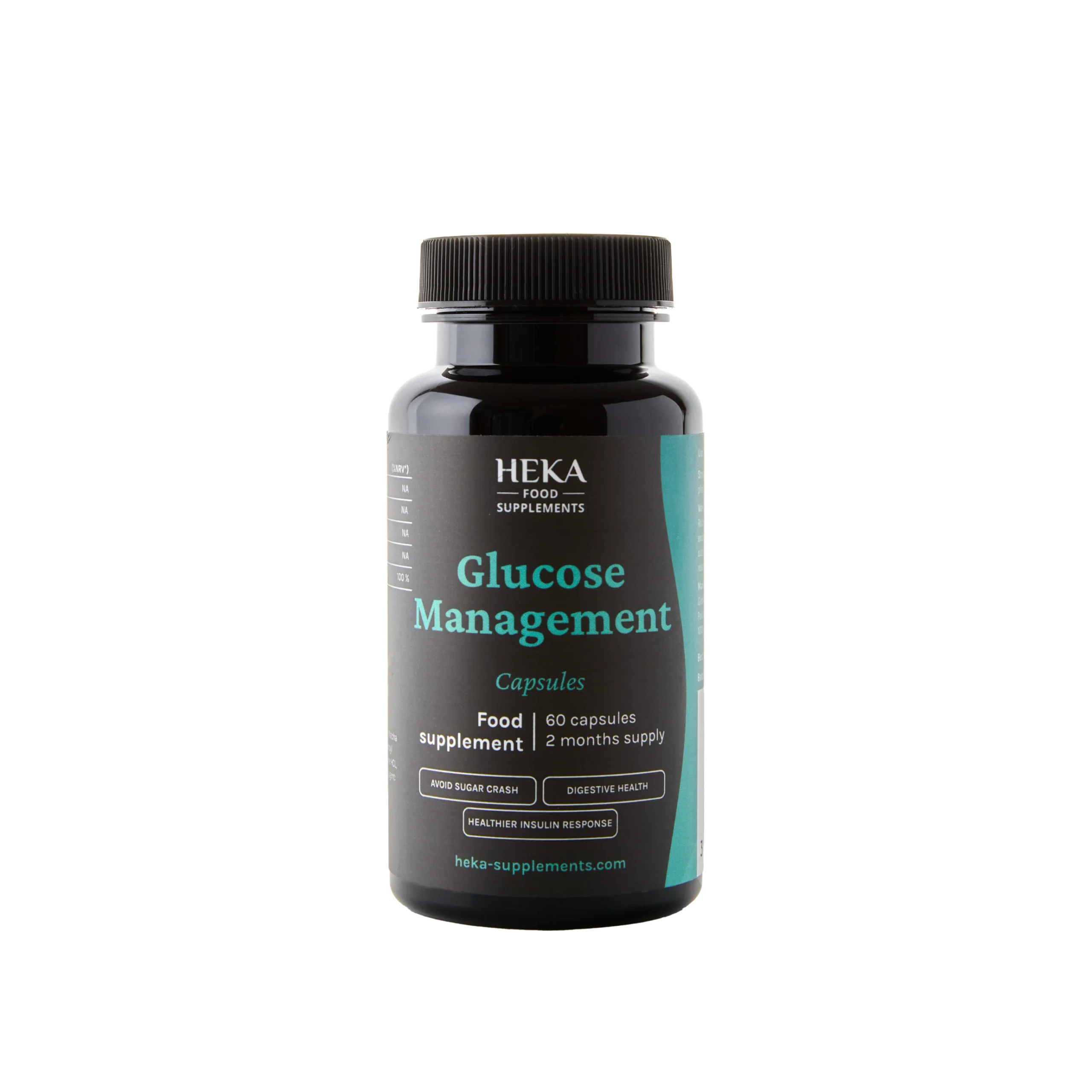 HEKA Glucose Management Capsules are a dietary supplement that combines cinnamon, matcha powder, L-arginine, L-carnitine, and zinc to support normal carbohydrate metabolism and blood glucose levels. One capsule daily provides an easy and convenient way to supplement with nutrients that support glucose metabolism.