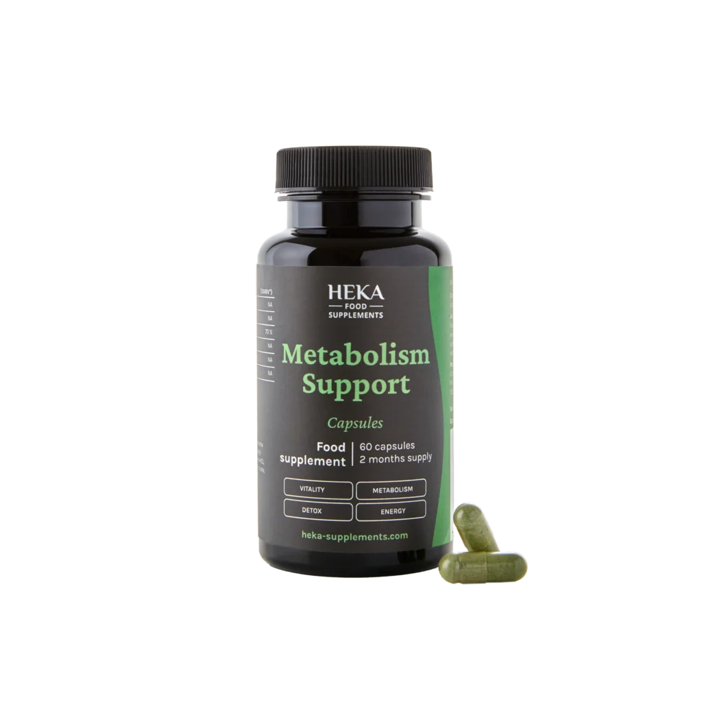 Capsulele HEKA pentru susținerea reglării/pierderii în greutate sunt un supliment alimentar conceput pentru a sprijini metabolismul și echilibrul energetic. Conțin o combinație de spirulină, pudră matcha, L-arginină, L-carnitină, oțet de mere și zinc, care împreună contribuie la metabolismul normal al macronutrienților, la funcționarea sistemului imunitar și la menținerea energiei pe parcursul zilei.