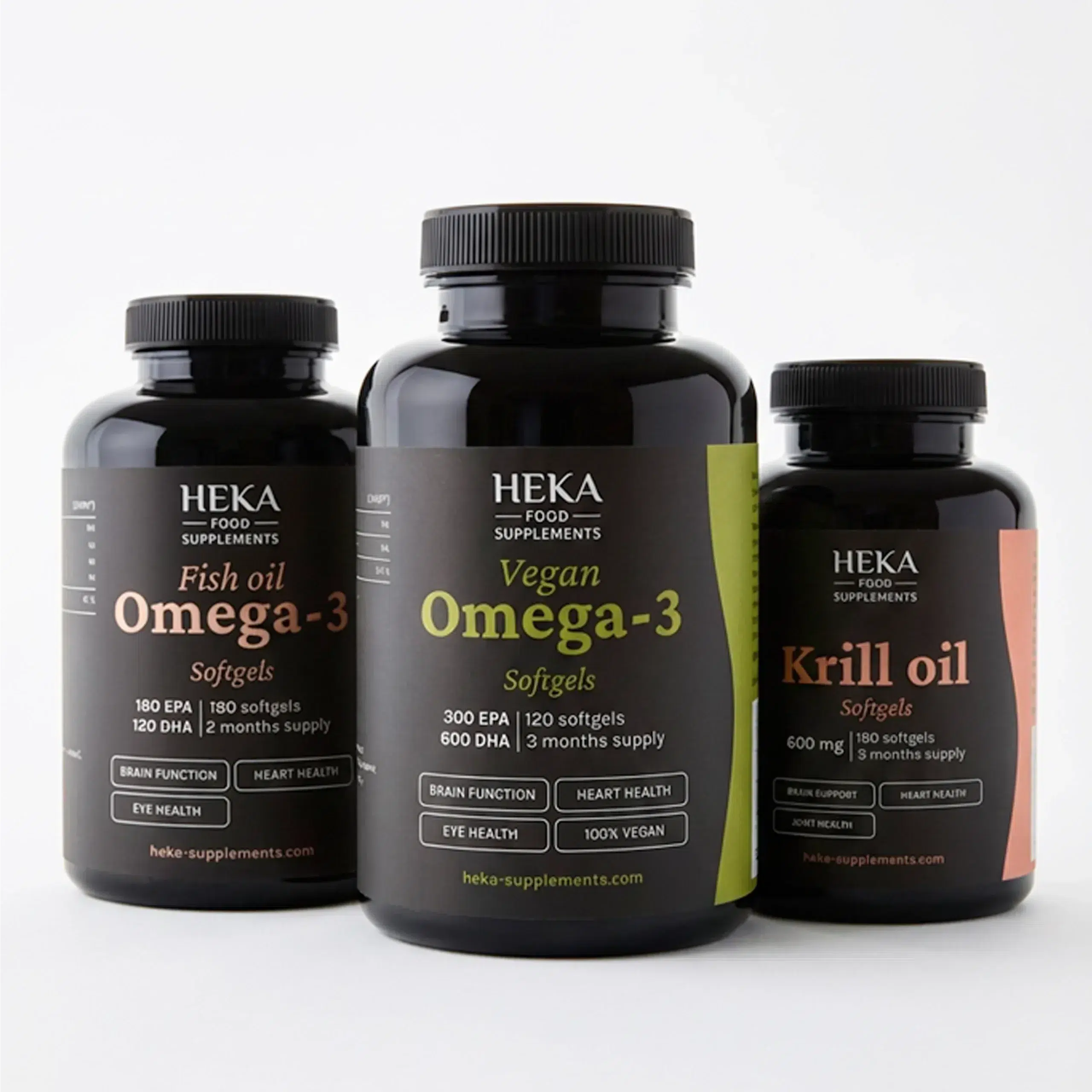 Diferența dintre Heka Omega 3 din ulei de pește și HEKA Omega 3 vegane, capsule moi